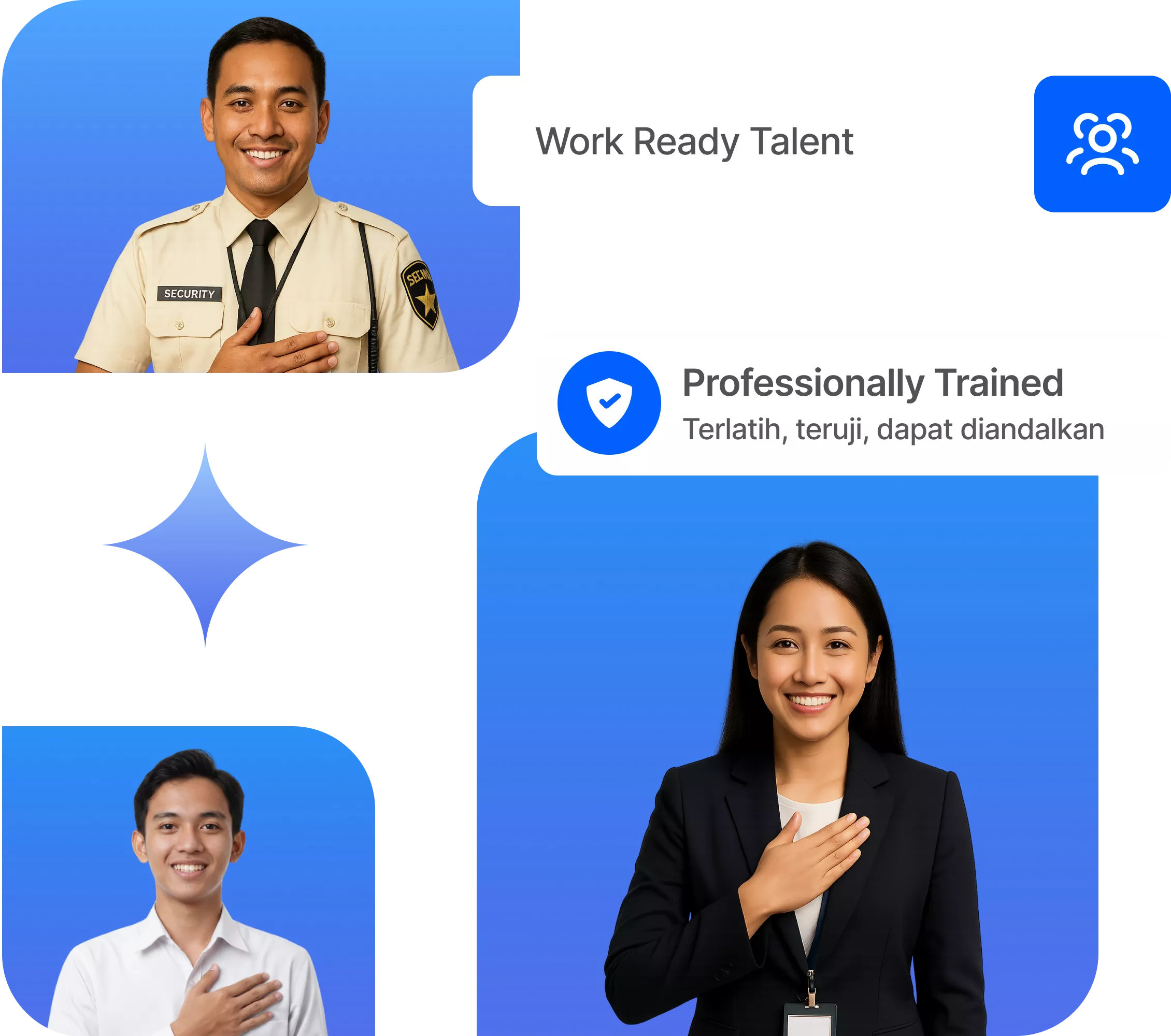 Setiap tenaga kerja kami dibekali pelatihan sesuai bidangnya agar siap menjalankan tugas secara optimal di berbagai sektor.